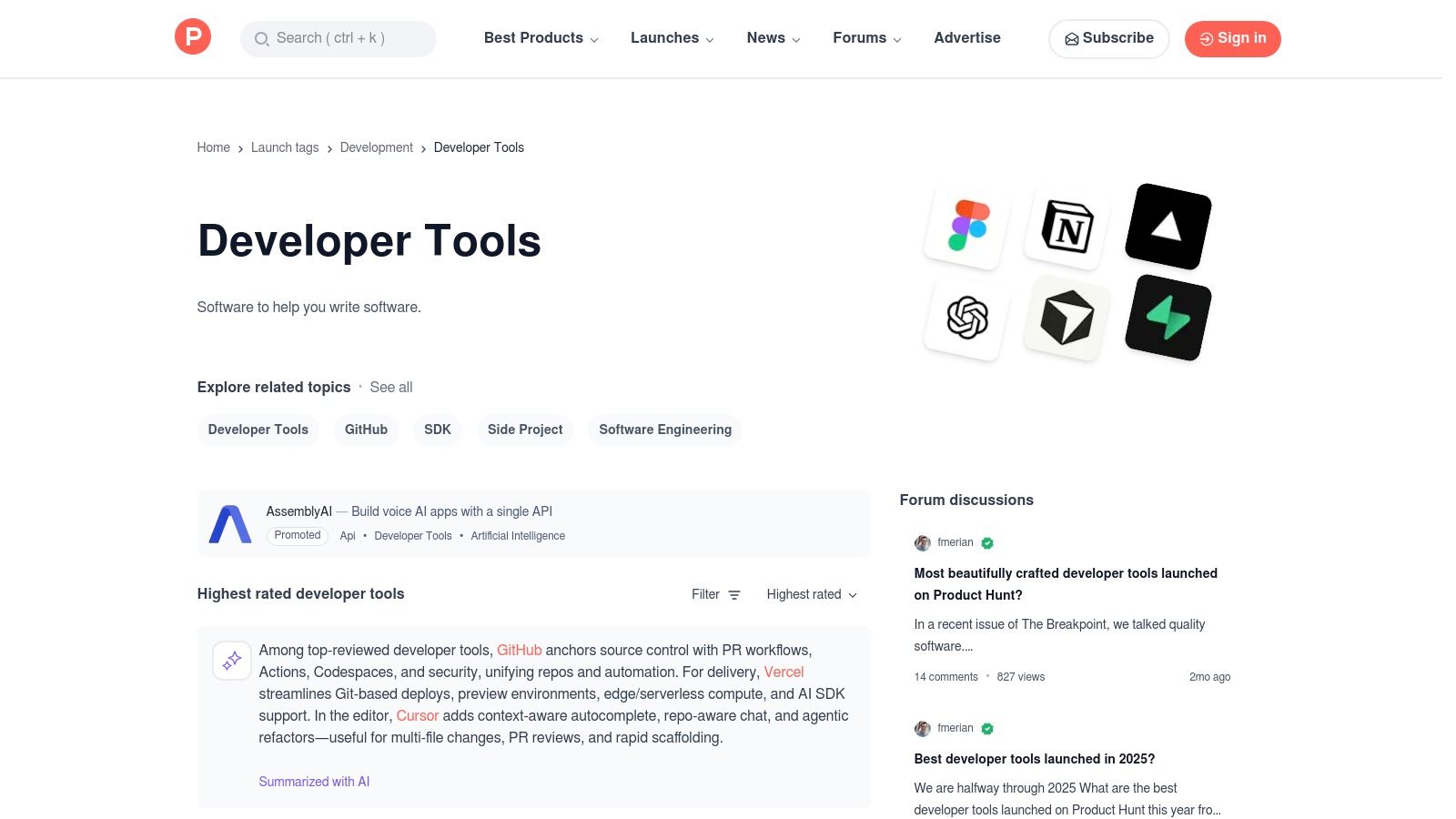 While not a direct AI tool itself, Product Hunt’s "Developer Tools" section is an indispensable resource for discovering the very latest innovations in the space. It's a daily showcase where new AI-powered developer tools launch, providing a real-time feed of what's emerging. This makes it a crucial first stop for anyone looking to stay ahead of the curve and find groundbreaking solutions before they become mainstream.