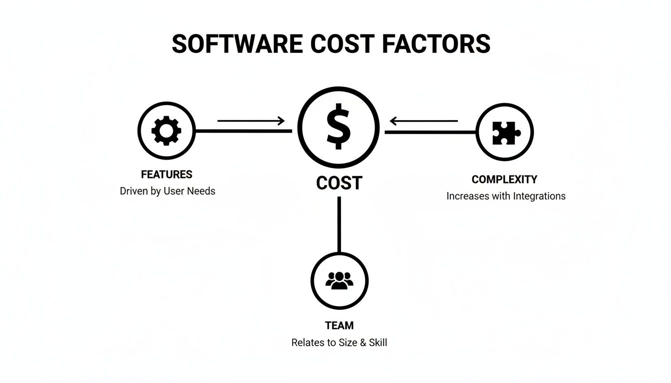 This guide is designed to pull back the curtain on that pricing. The final number you see on a proposal isn't just pulled out of thin air. It’s a direct reflection of a series of deliberate choices you'll make about features, complexity, and the team you hire. Getting a handle on these drivers will empower you to have much more productive conversations with development partners and steer your project toward your actual business goals.